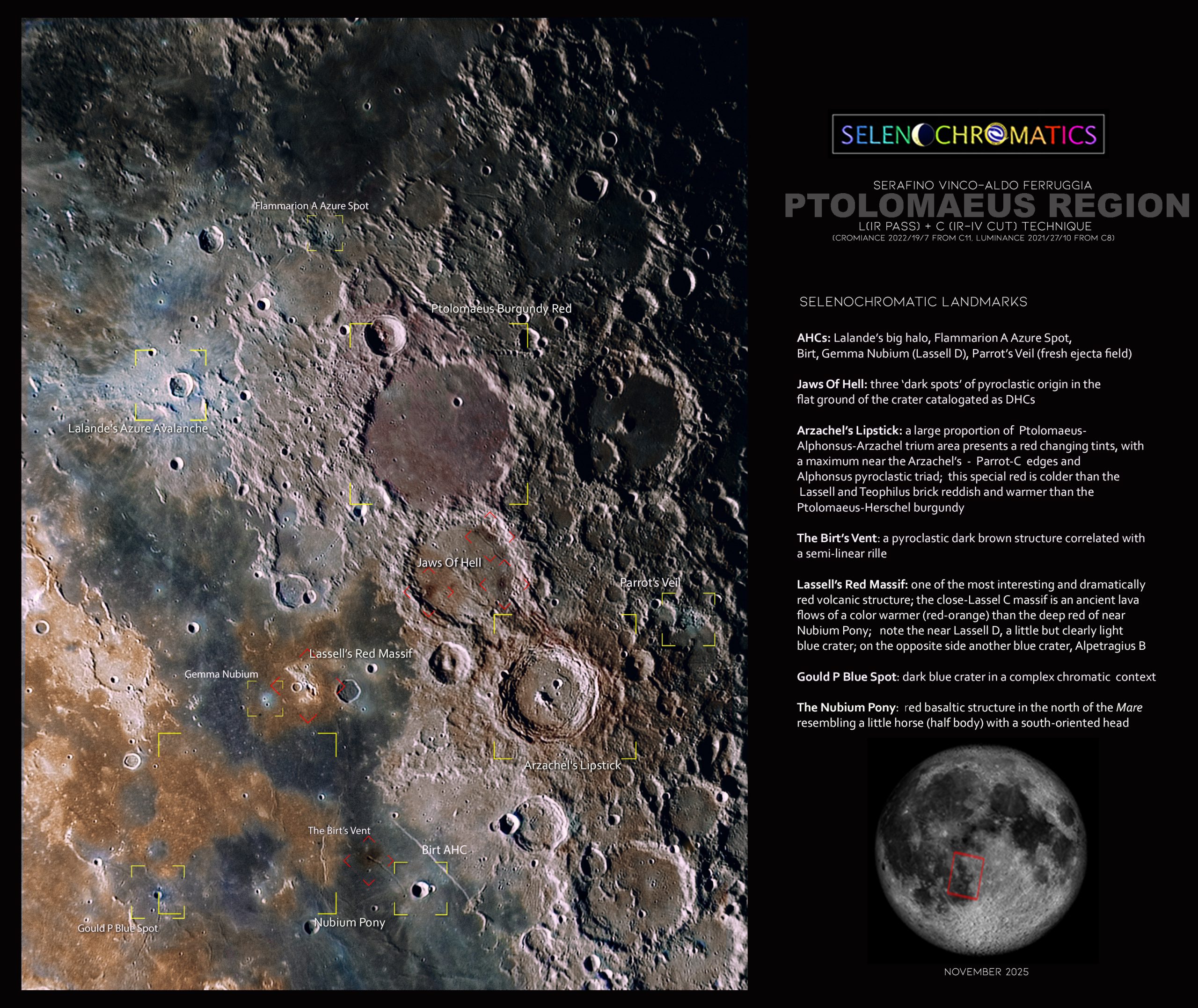 The landmarks used as chromatic references for the Selenochromatic elaborations are listed the maps of this Atlas. Some maps are provided with geologic (